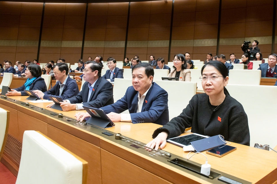 Đại biểu Quốc hội bấm nút thông qua dự án luật. Ảnh: Quốc hội. |