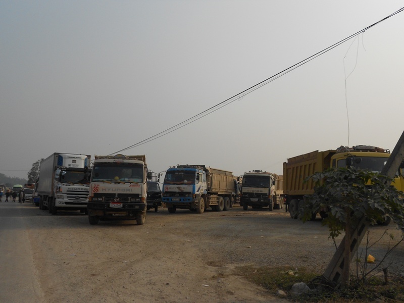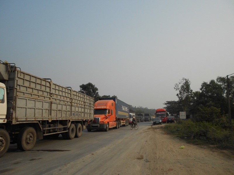 | Nhiều xe phải tấp vào hai bên vệ đường chờ đợi. |