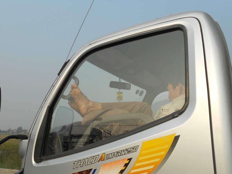 | Nhiều tài xế tranh thủ đánh răng, rửa mặt ngay trên đường trong khi chờ thông xe. |