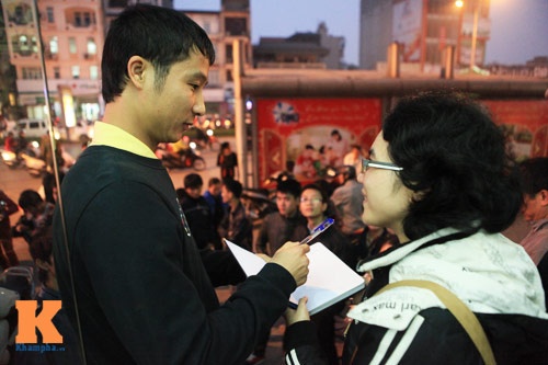 Một số người đến mua vé vẫn hâm mộ, muốn chụp hình xin chữ kí của anh. |