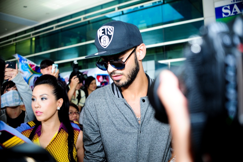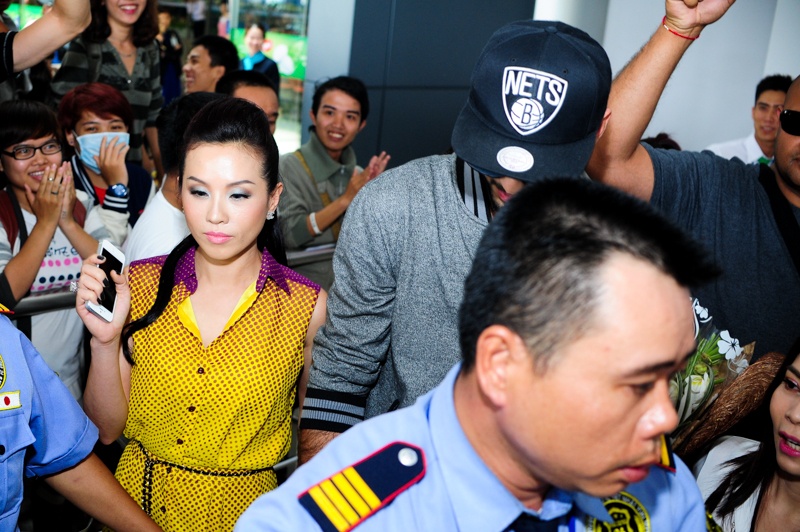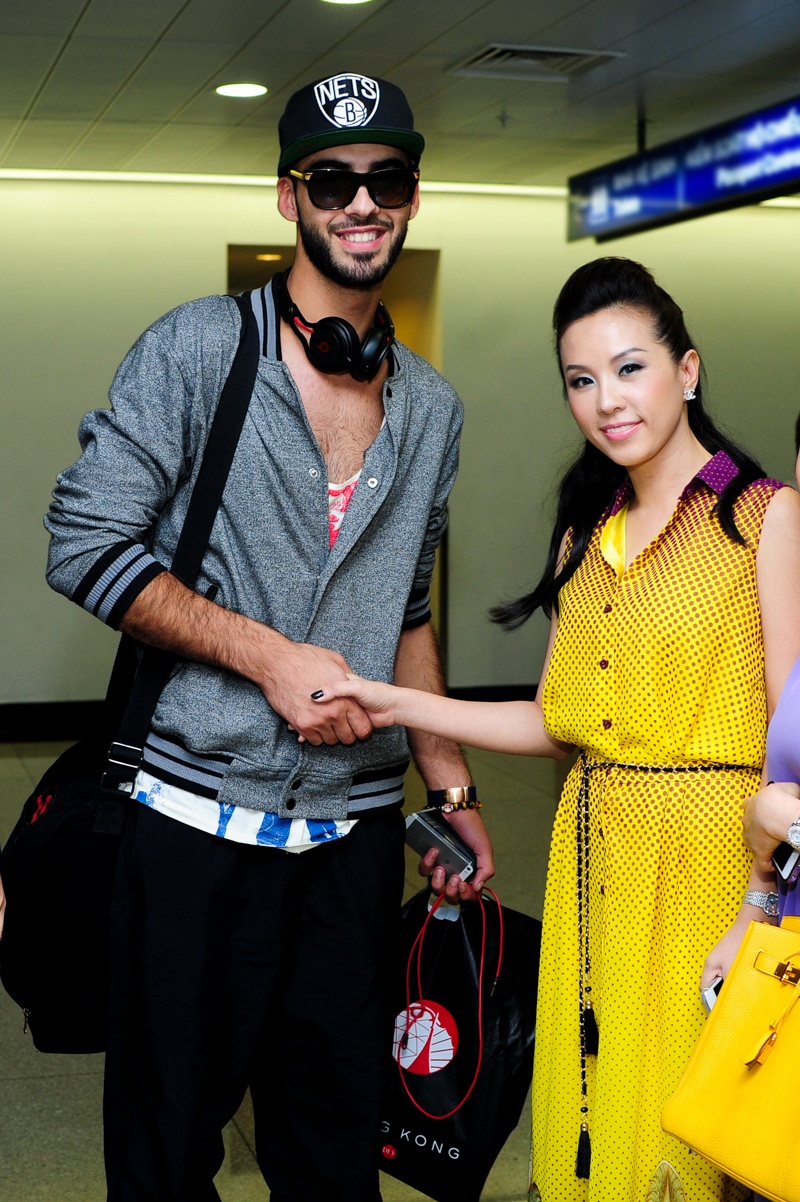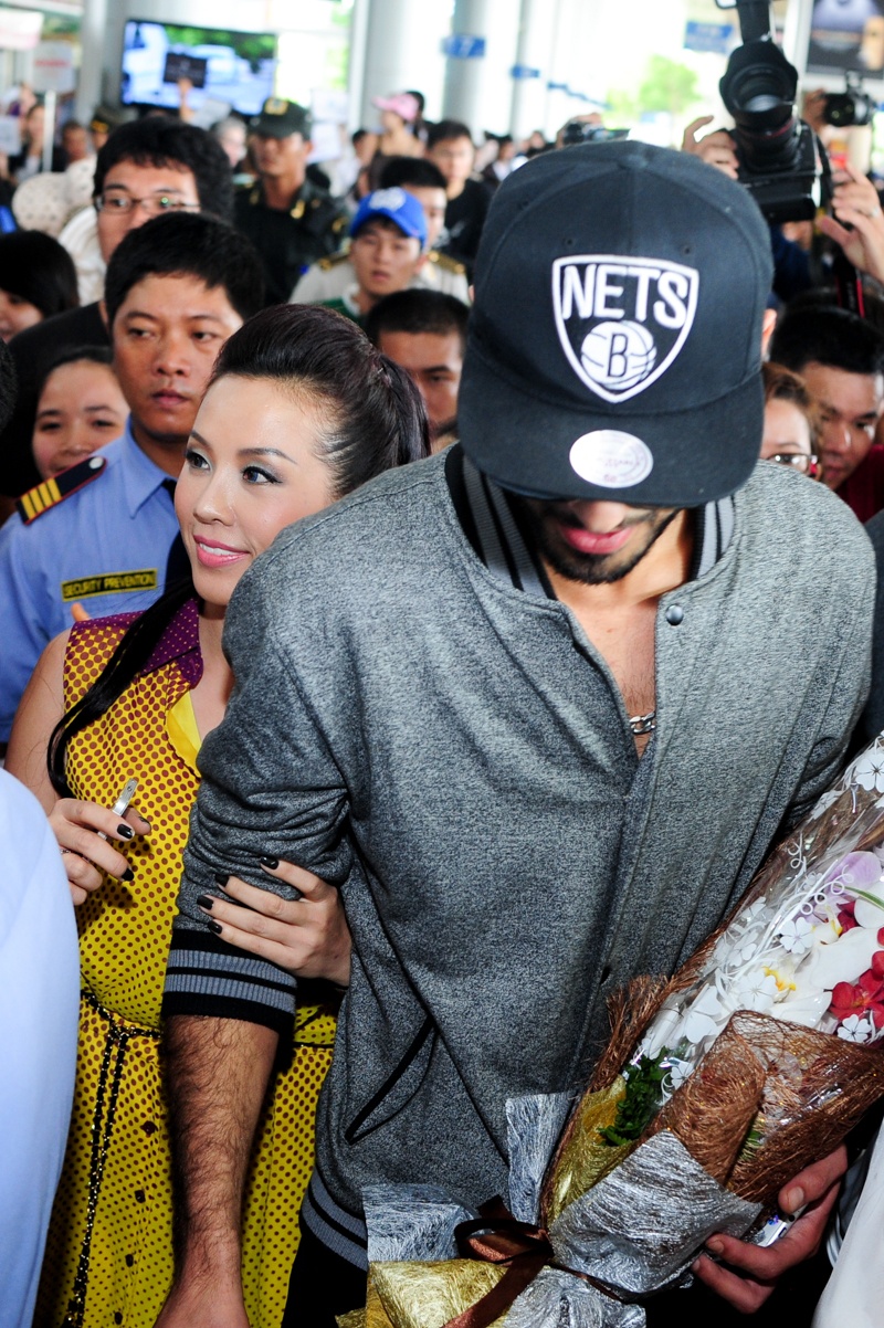 | Sáng ngày 11/9, Hoa hậu phu nhân Thu Hoài có mặt tại sân bay Tây Sơn Nhất để chờ đón "trai đẹp bị trục xuất" Omar. Cùng với Hoa hậu Việt Nam Thùy Dung, Thu Hoài là hai gương mặt sẽ đồng hành cùng Omar trong thời gian anh chàng ở Việt Nam. |