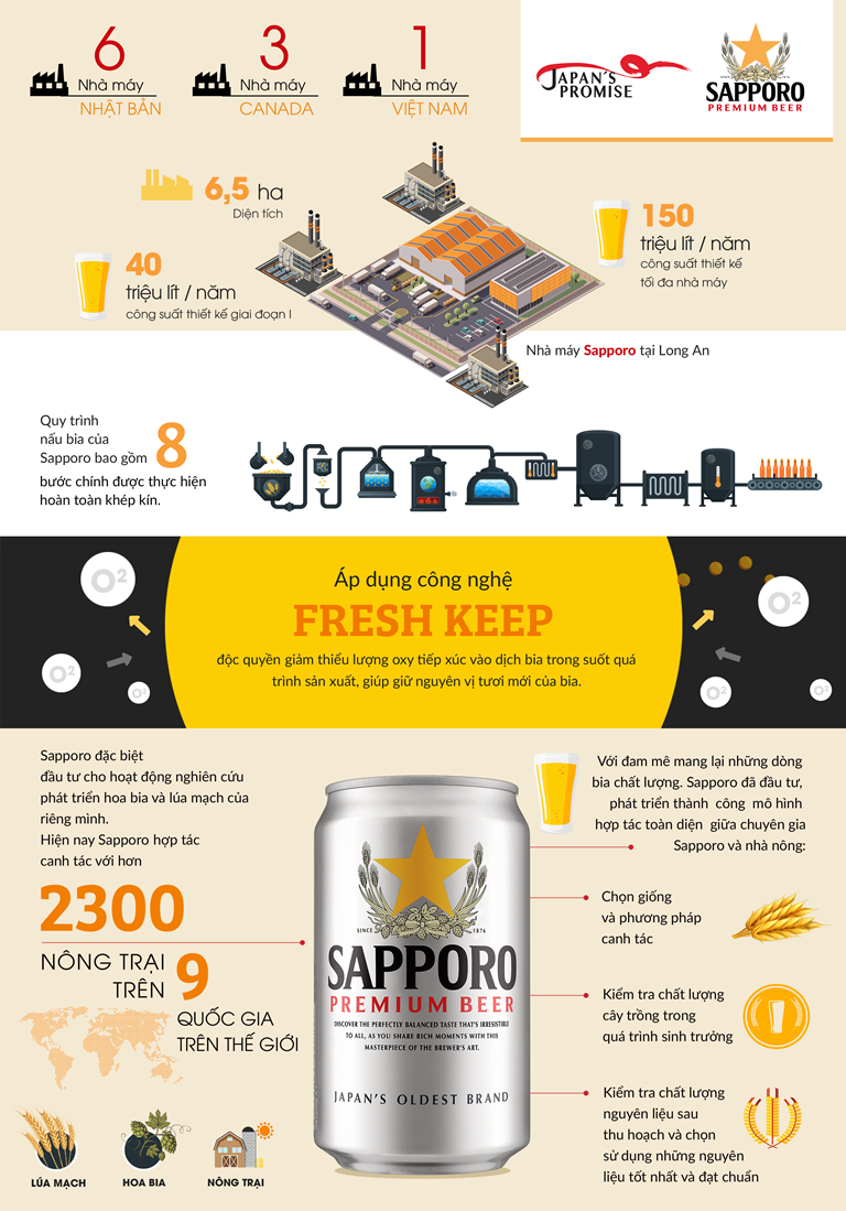 Với mục tiêu sáng tạo và làm phong phú thị trường ẩm thực Việt Nam, Sapporo vừa đổi mới 2 dòng sản phẩm chai 330ml và lon 330ml cả diện mạo, hương vị dành riêng cho người Việt.