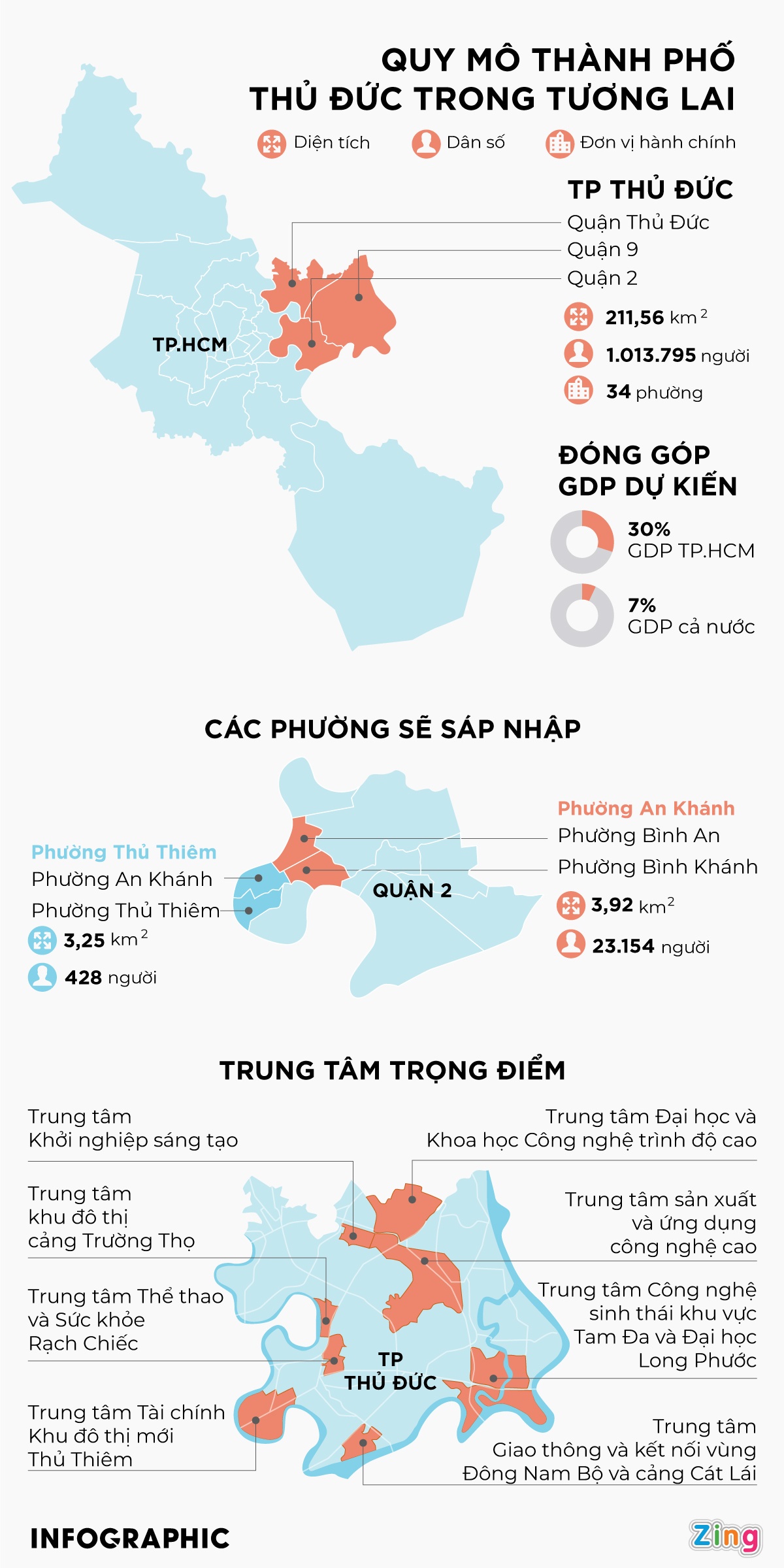 Với diện tích tự nhiên 211,56 km2 cùng dân số hơn 1 triệu người, TP Thủ Đức được kỳ vọng đóng góp 30% cho GDP TP.HCM và 7% GDP cả nước.