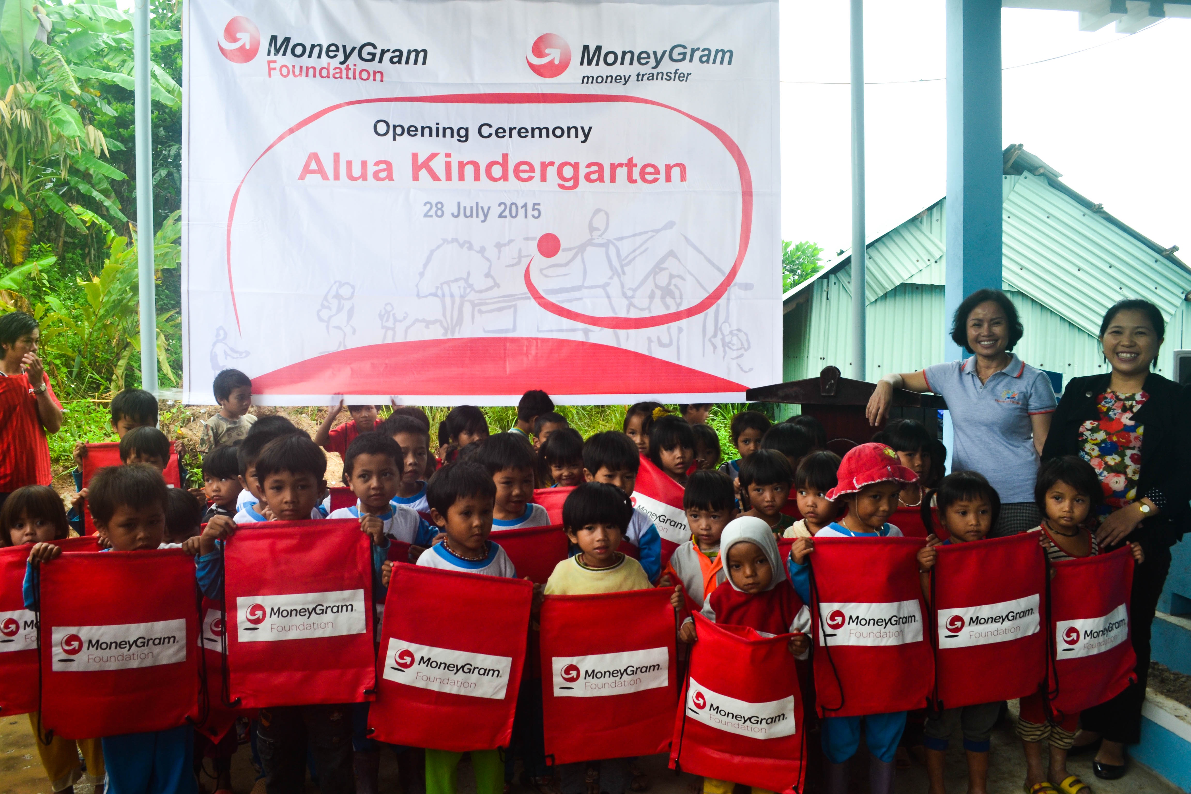 Ngôi trường được gọi là trường mẫu giáo Alua, nằm ngay bên cạnh Kxeng - một trường mẫu giáo khác cũng được tài trợ bởi quỹ MoneyGram vào năm ngoái. Hai phòng học có sức chứa lên đến 50 học sinh cho một năm học và cung cấp cho các em môi trường học tập có trang bị quạt trần, bóng đèn điện, hệ thống điện, hệ thống nước, nhà vệ sinh trong nhà, chỗ rửa tay và một mái hiên rợp bóng mát. Hai trường mẫu giáo hiện nay là cơ sở giáo dục duy nhất dành cho trẻ em 3-6 tuổi, phục vụ cộng đồng Tây Giang.