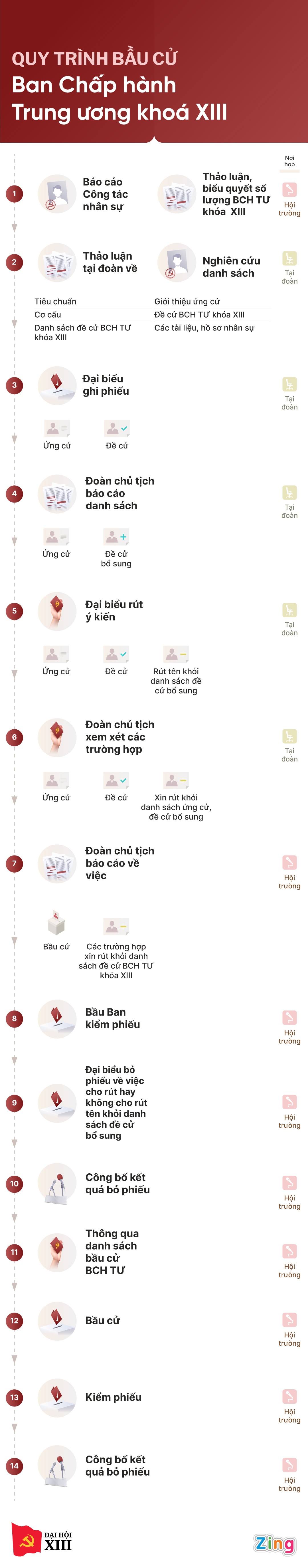 Bắt đầu từ 28/1, quy trình bầu Ban Chấp hành Trung ương (BCH TƯ) khóa XIII chọn ra 200 ủy viên, trong đó 180 ủy viên chính thức và 20 dự khuyết.