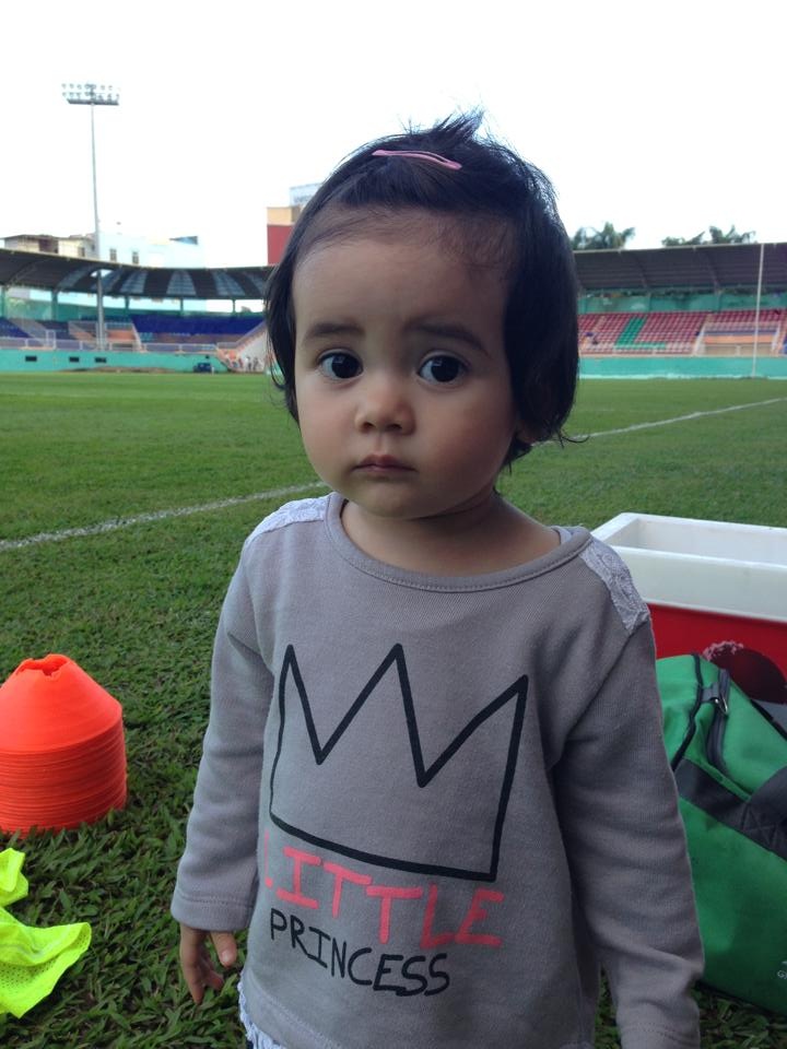 | Công chúa nhỏ Melita của HLV Graechen đáng yêu trên sân tập. |