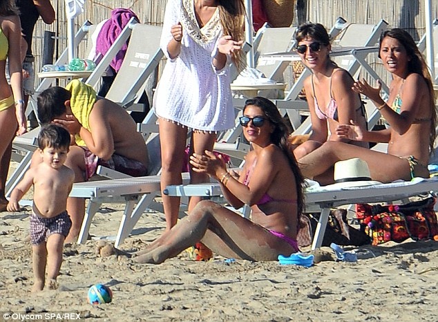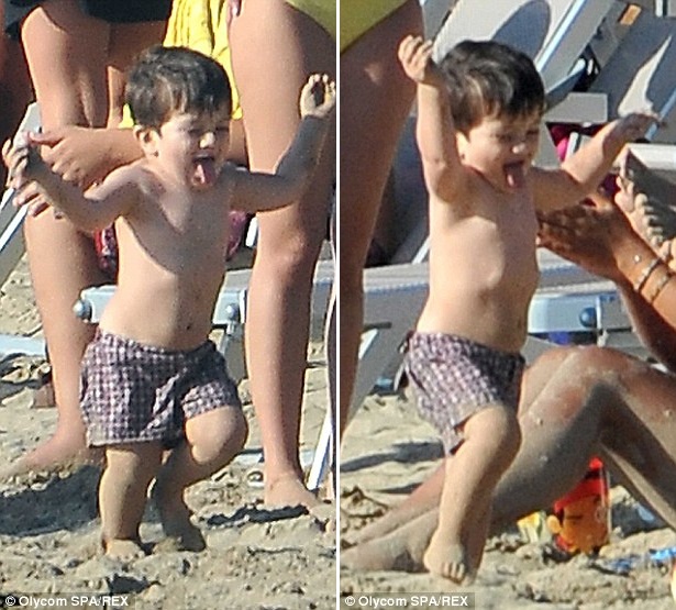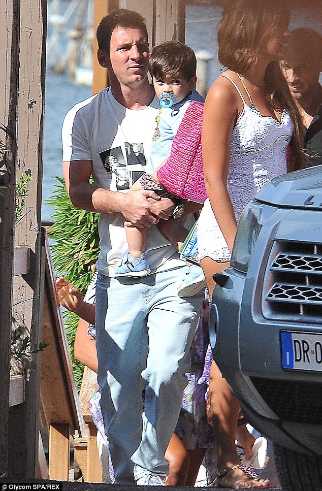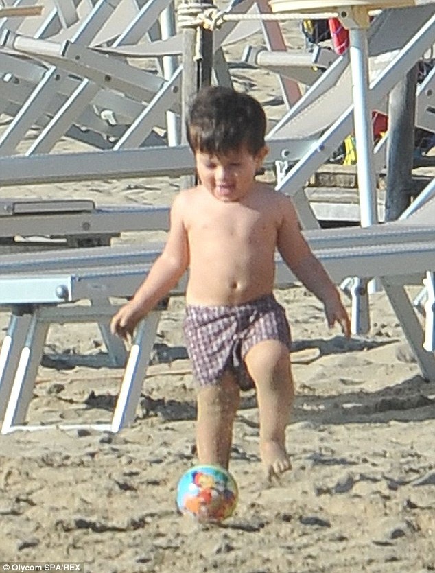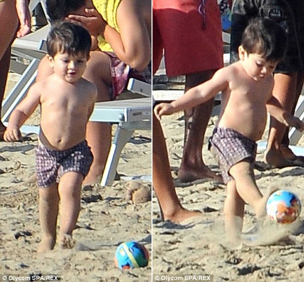 Xuất hiện trên bãi biển Sabaudia, Lazio, Italy, Thiago - con trai của Messi thu hút sự chú ý khi cởi trần, lon ton chơi bóng.