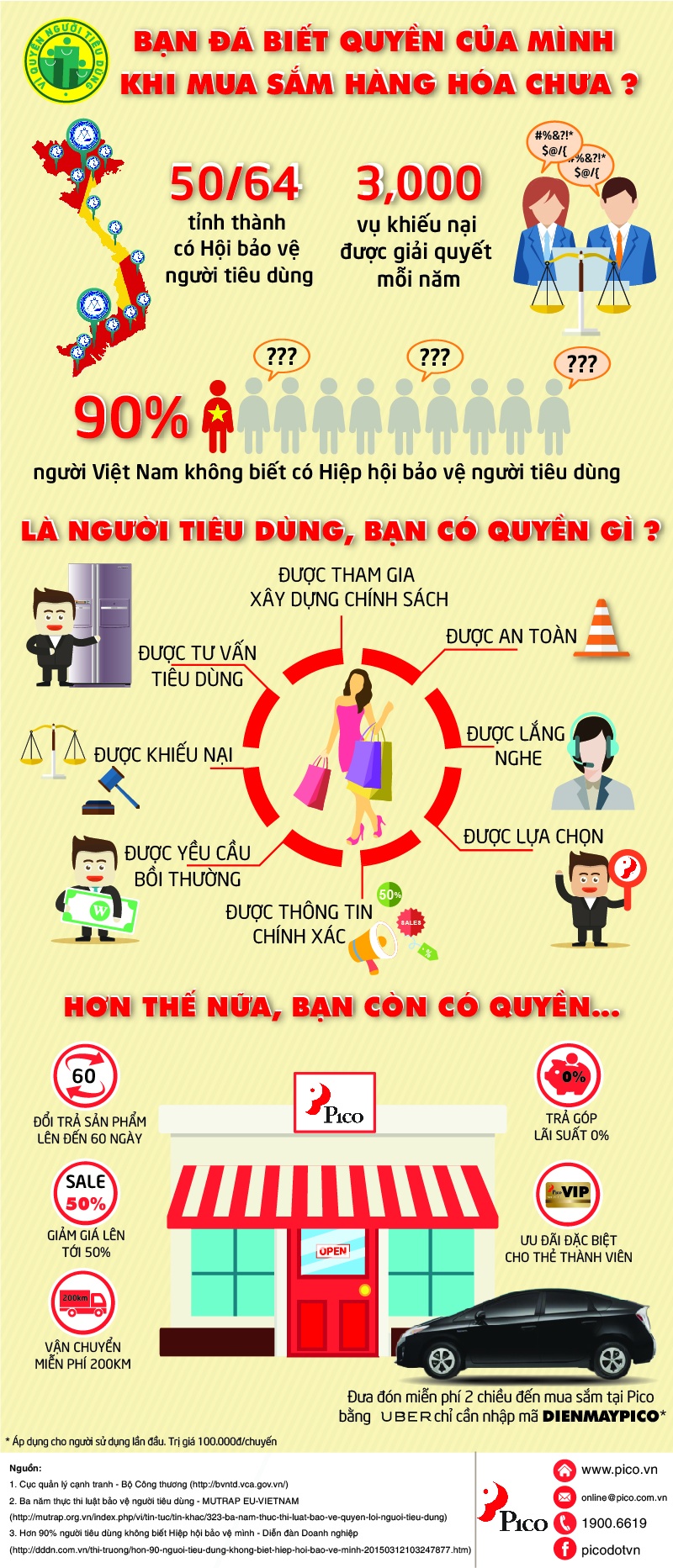 Khi mua sắm hàng hóa, bạn được hưởng 8 quyền cơ bản đề xuất bởi Hiệp hội bảo vệ người tiêu dùng và nhiều quyền lợi đặc biệt do công ty, doanh nghiệp kinh doanh sản phẩm áp dụng.