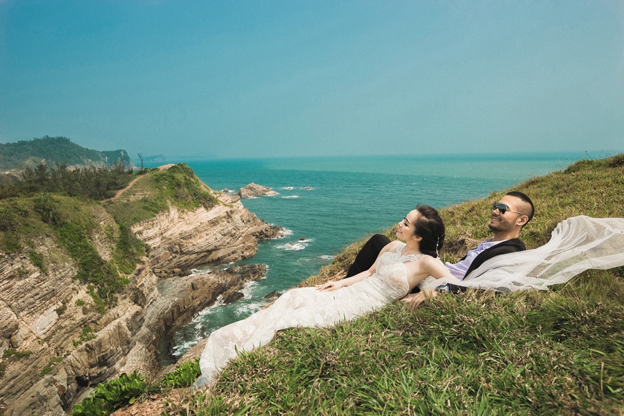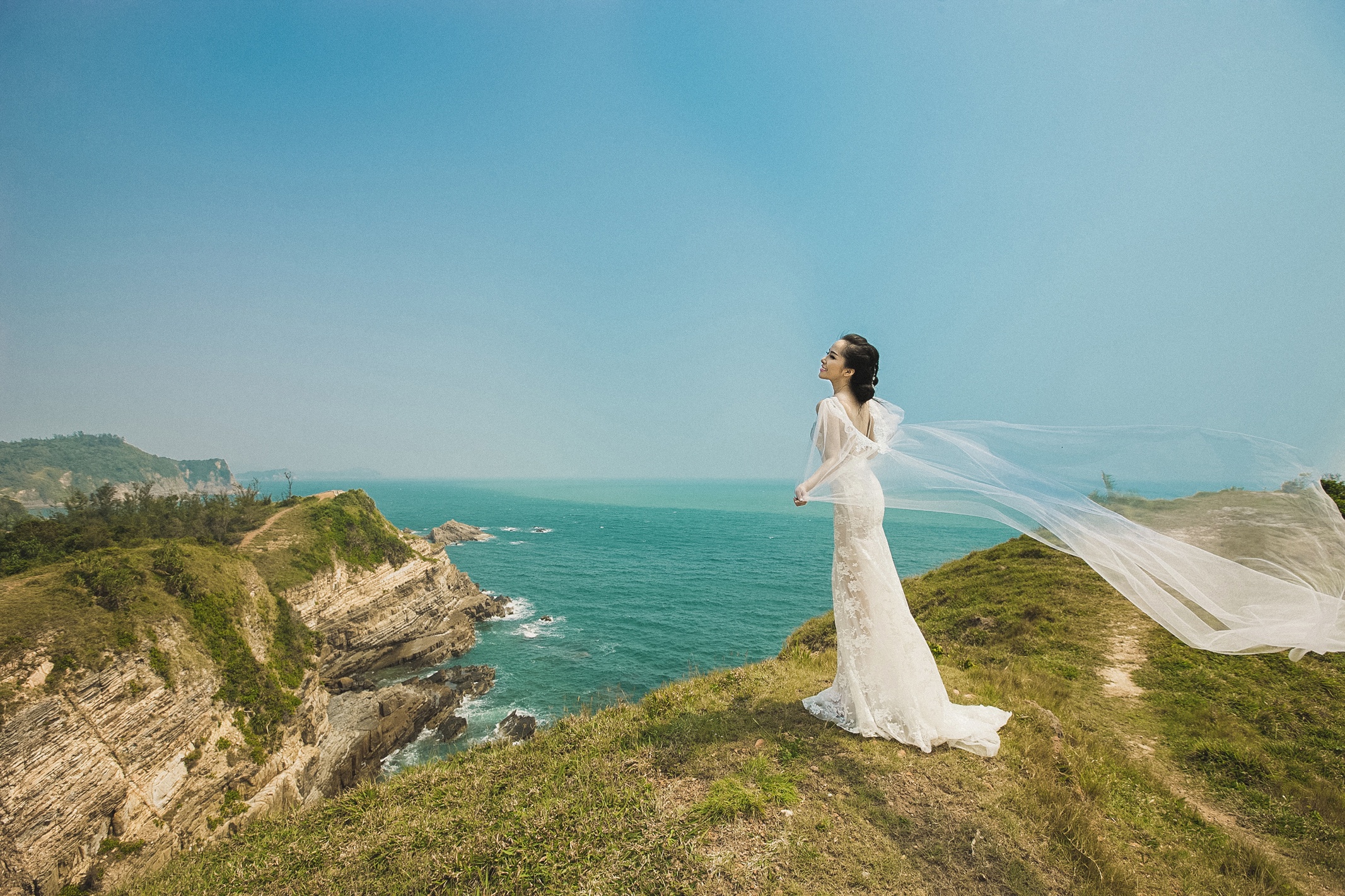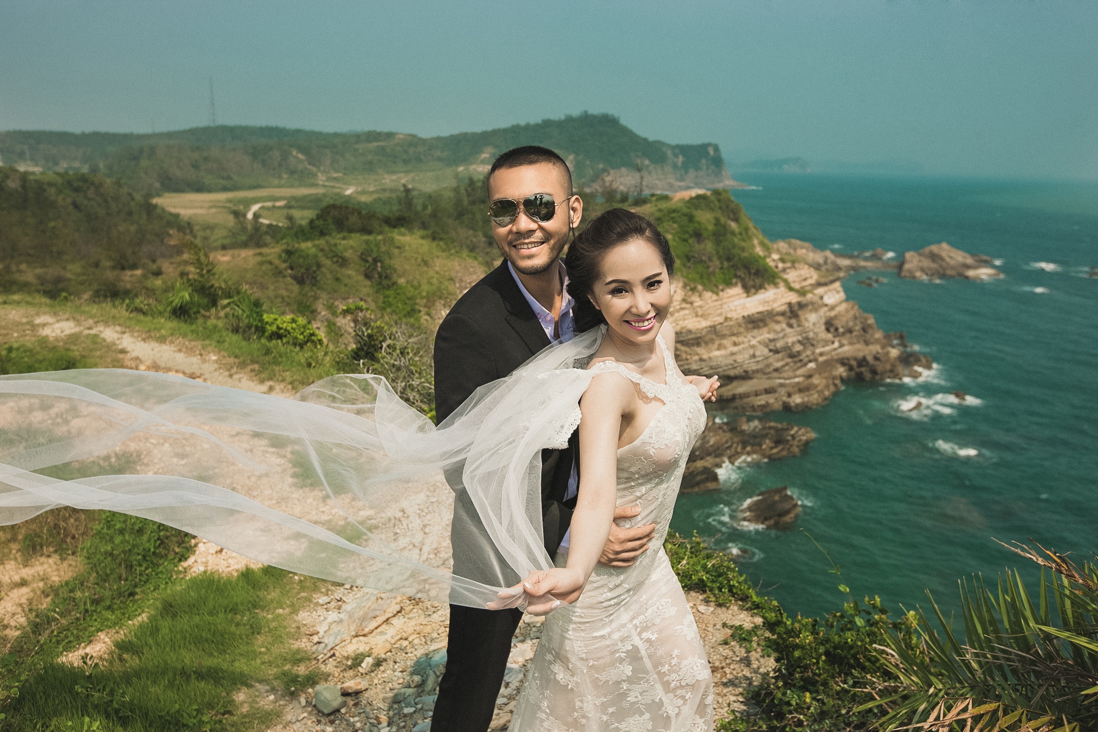 Đảo Cô Tô thuộc tỉnh Quảng Ninh là điểm chụp ảnh đầu tiên mà cả hai chọn lựa. Để có được những khung ảnh đẹp nhất, cặp tình nhân dậy từ sáng sớm, di chuyển đến địa điểm vắng và chọn lựa góc chụp ưng ý.