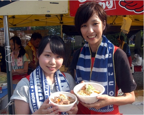 | Các CĐV nữ xinh đẹp với món phở Việt Nam. Cả hai vui vẻ tiết lộ đã bỏ ra 800 yên (khoảng 180.000 đồng) để thưởng thức món phở Việt Nam và cổ vũ Công Vinh. |