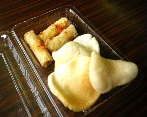 | Nem rán và phồng tôm - những món ăn đậm chất Việt Nam cũng được phục vụ khán giả đến sân. |