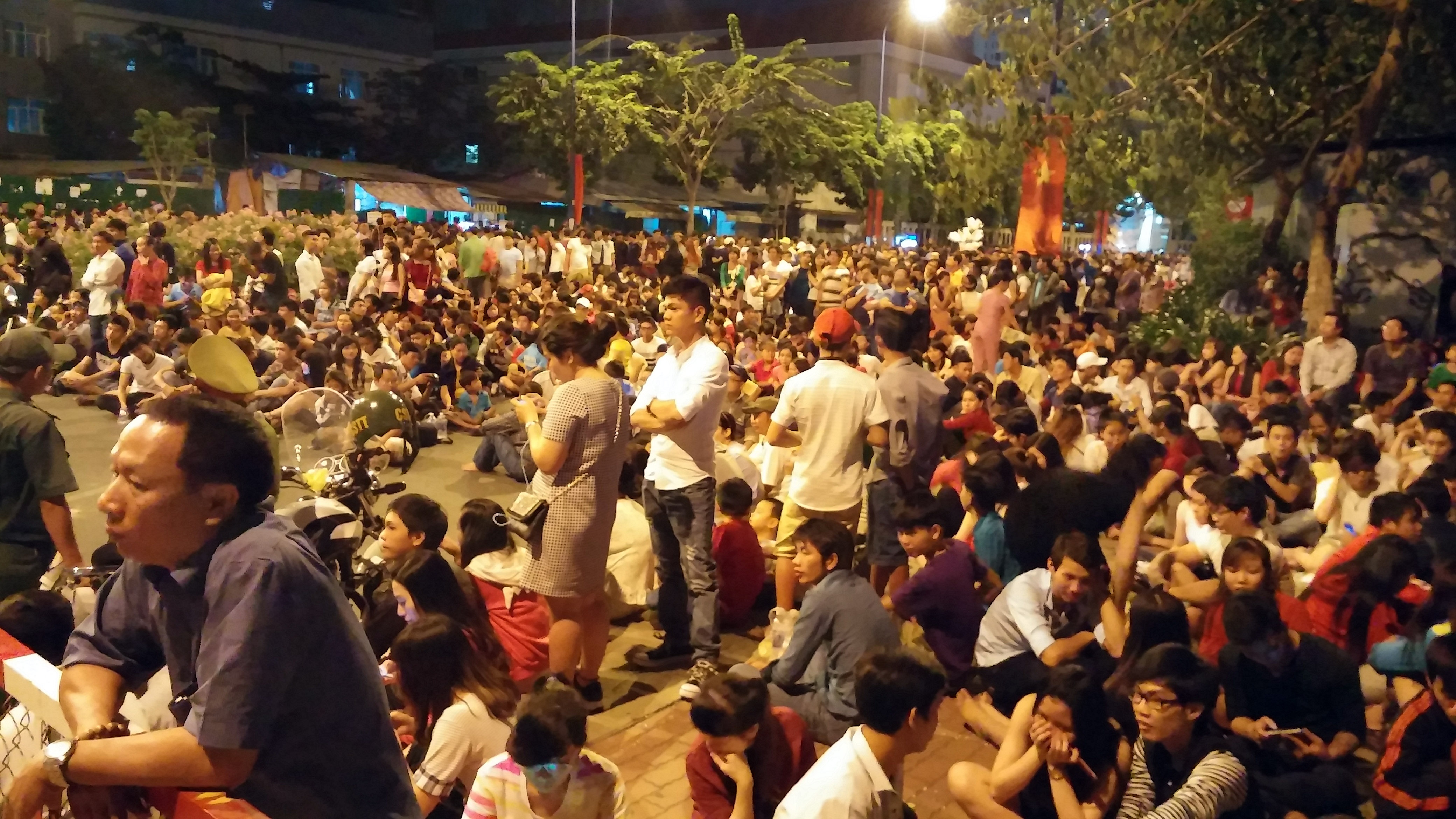 | Từ đêm 31/12 đến rạng sáng 1/1/2016, rất đông người dân TP HCM đã tập trung tại những tuyến đường trung tâm TP như Tôn Đức Thắng, Võ Văn Kiệt, Nguyễn Huệ, bờ sông Sài Gòn để theo dõi thời khắc bắn pháo hoa kéo dài trong 15 phút. |