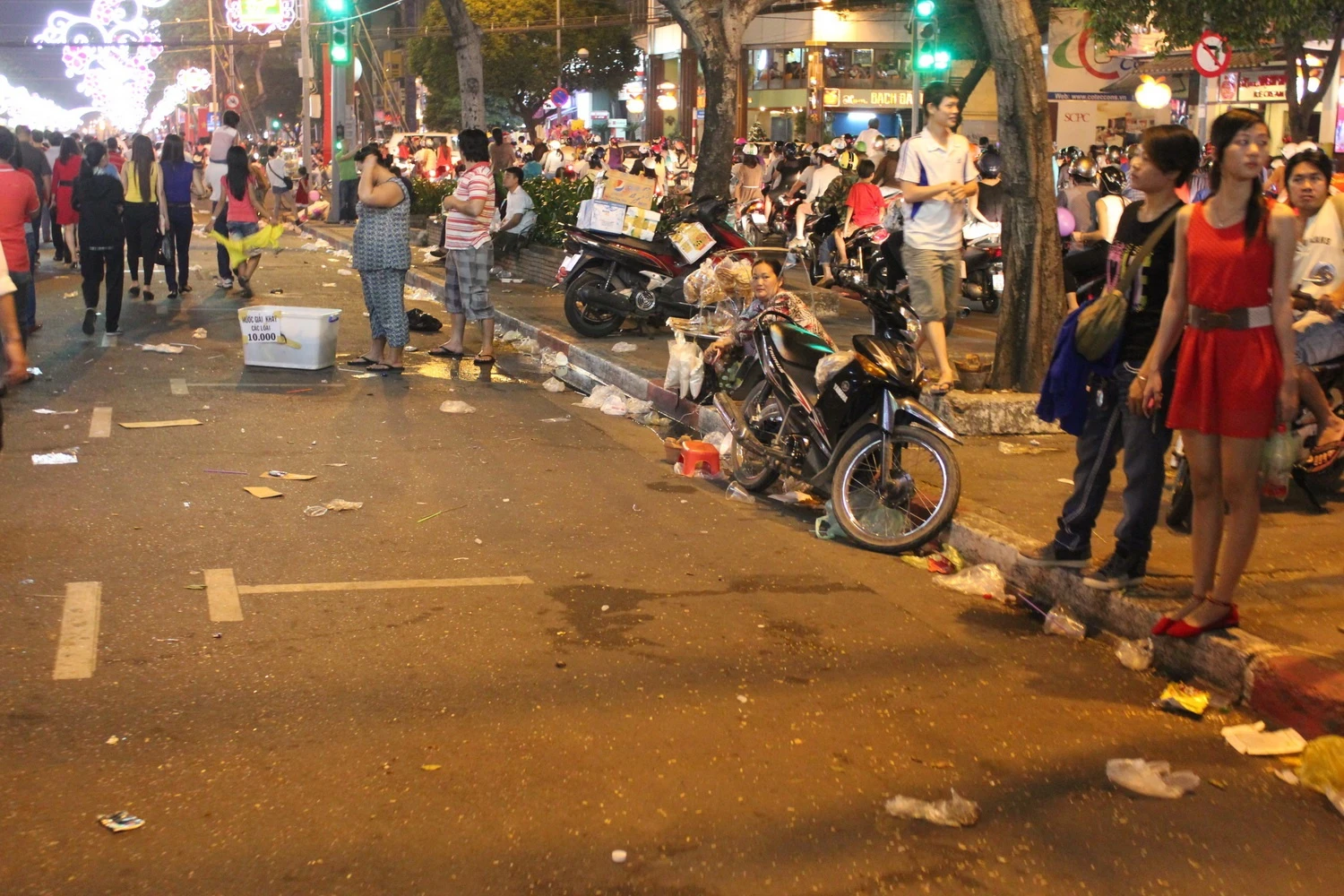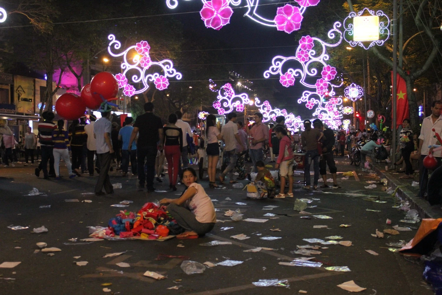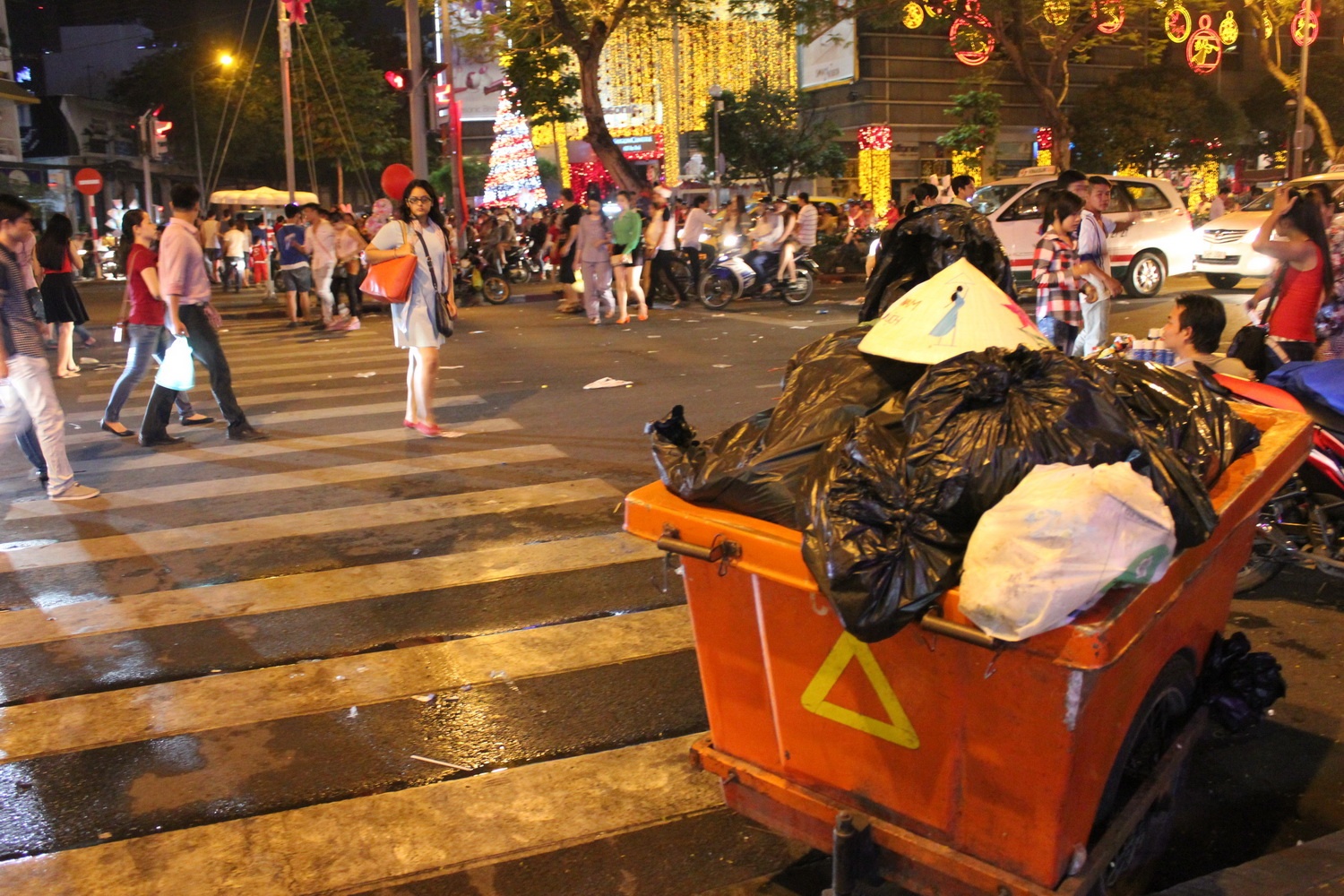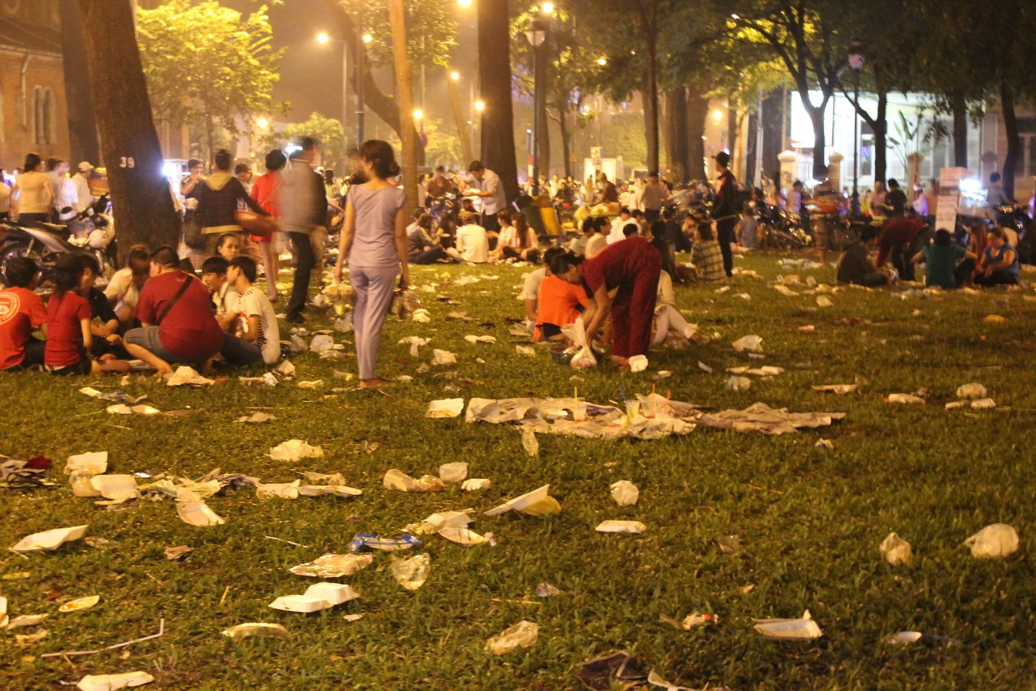 Rác tràn ngập trung tâm Sài Gòn sau Noel