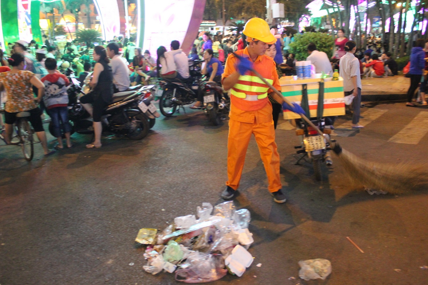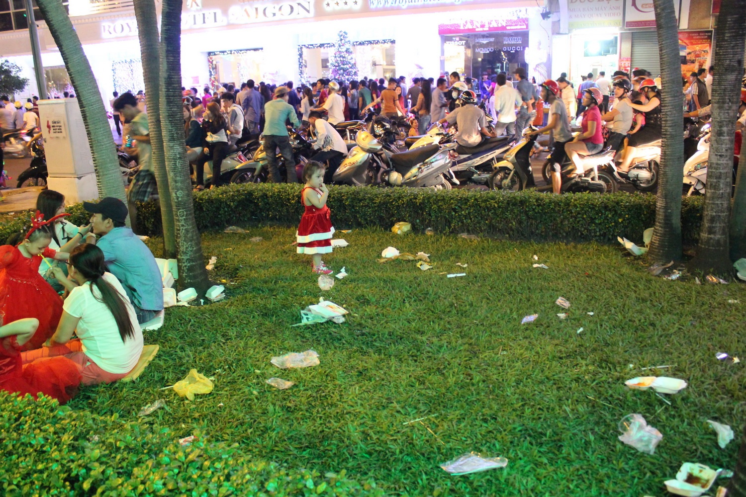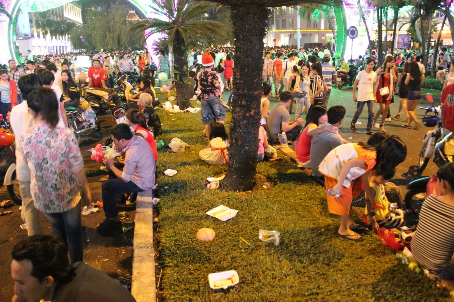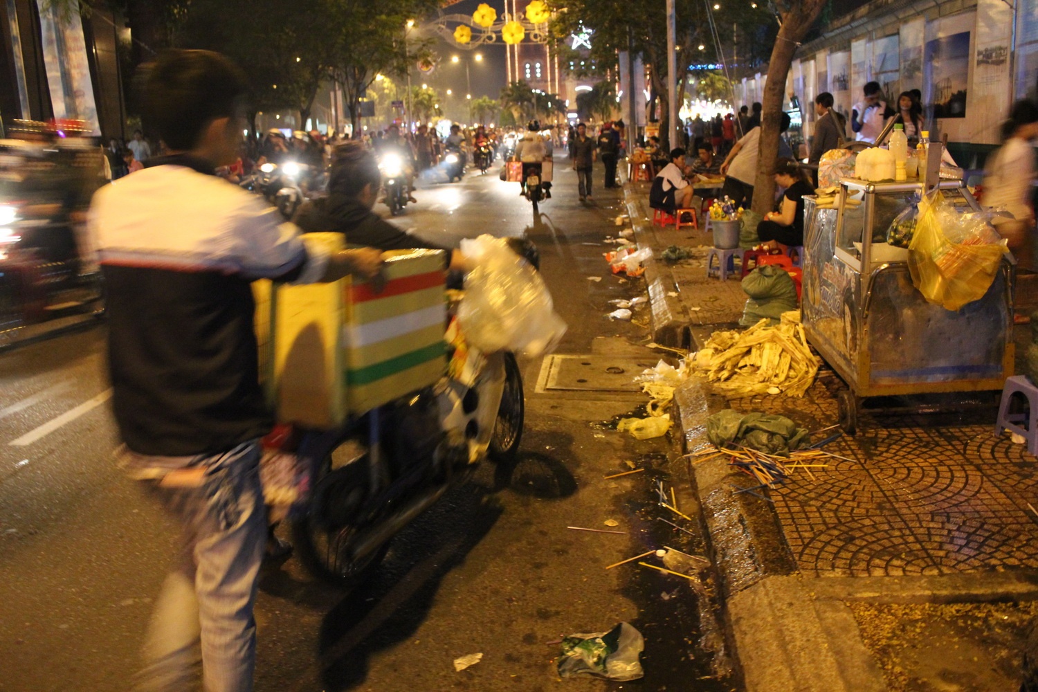 Rác tràn ngập trung tâm Sài Gòn sau Noel