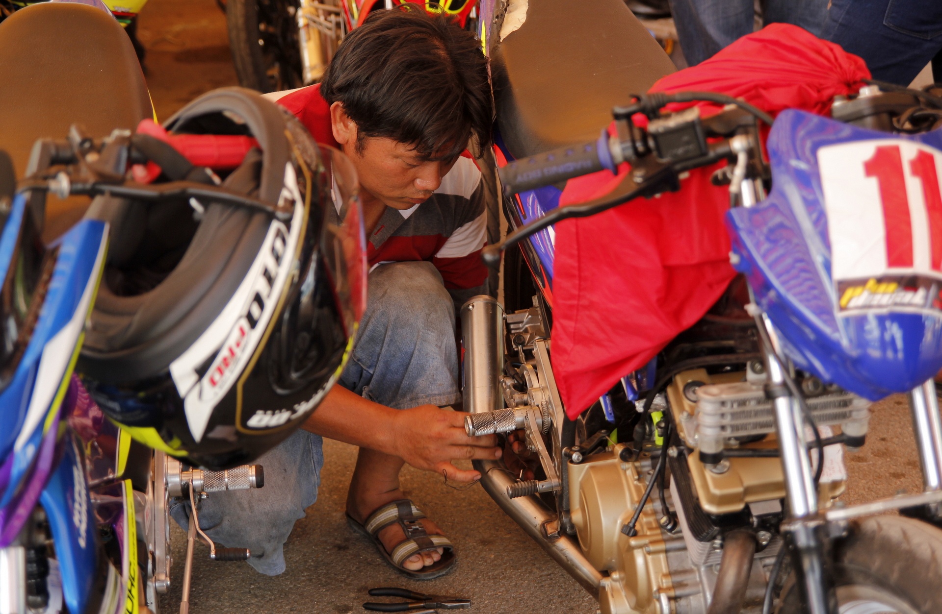 | Mỗi đội đua đều có kỹ thuật viên kiểm tra xe trước khi xuất phát. Theo chia sẻ của một chủ lò độ, để tạo ra chiếc Raider đủ tiêu chuẩn tham gia giải, số tiền phải bỏ ra không dưới 200 triệu đồng. Trong đó chi phí để lắp những phụ tùng hàng hiệu như lốp dành cho đường đua, phuộc Ohlins và độ máy chiếm phần lớn. |