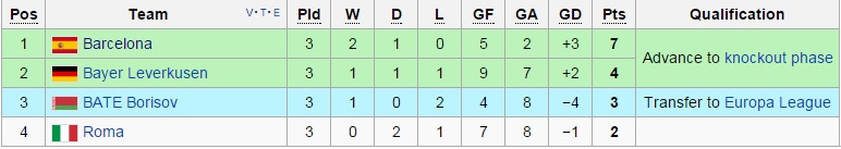 Dẫu vậy, chiến thắng nhẹ nhàng 2-0 giúp Barca tiếp tục xây chắc ngôi đầu bảng F với 7 điểm trong tay, nhiều hơn đội bóng xếp thứ hai Bayer Leverkusen 3 điểm.