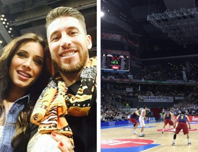 | Sergio Ramos cùng cô bạn gái Pilar Rubio đến xem trận Siêu kinh điển bóng rổ Real Madrid - Barcelona. Pilar Rubio là biên tập viên truyền hình. Ảnh: WENN. |