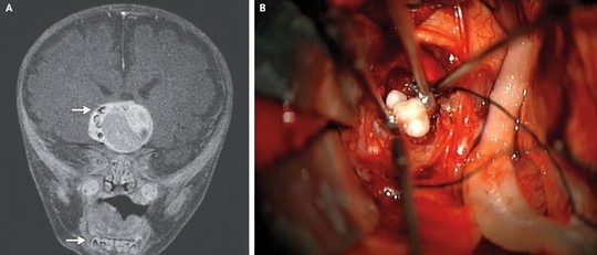 Bệnh nhi có triệu chứng là đầu tăng trưởng nhanh hơn bình thường và những xét nghiệm sau đó cho thấy cháu bé có khối u sọ hầu (craniopharyngioma) - một dạng u hiếm gặp có thể phát triển to hơn quả bóng đánh golf.
