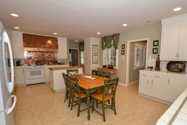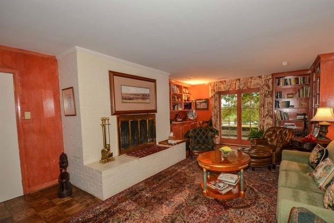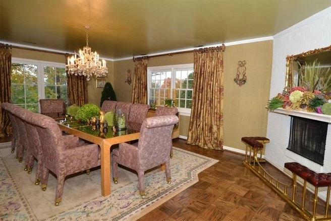 | Phòng ăn có lò sưởi và phong cách trang trí cổ điển kiểu thập niên 1960. |