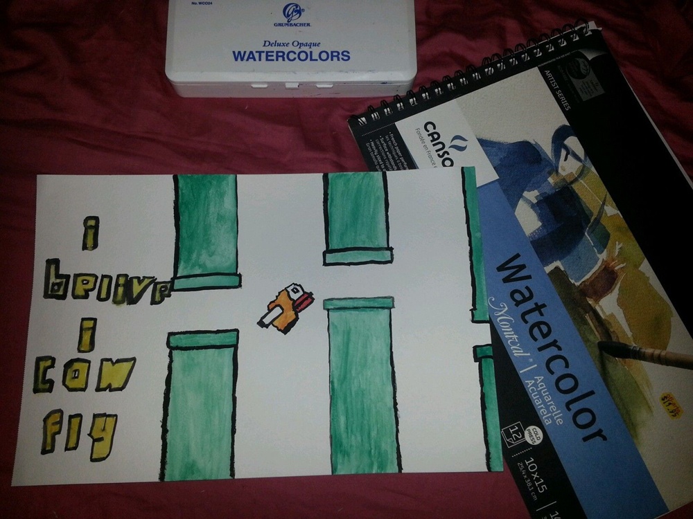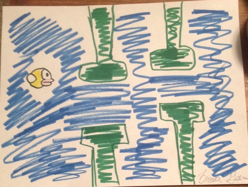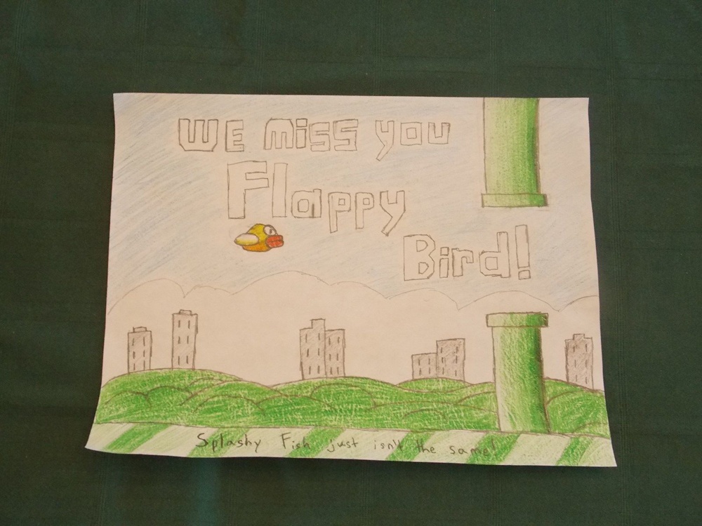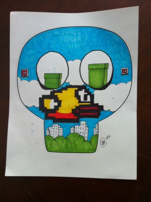 | Bức vẽ 5.000 đôla Mỹ (hơn 100 triệu đồng) được vẽ vào ngày Flappy Bird bị gỡ khỏi App Store và Google Play. |