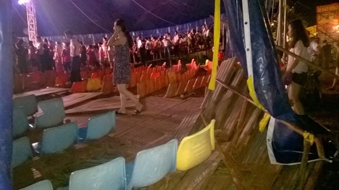 Trước đó, khoảng 20h ngày 5/8, khi người dân ổn định chỗ ngồi, đoàn biểu diễn xiếc do Liên đoàn xiếc Việt Nam tổ chức tại phường Hải Tân (TP Hải Dương) khai mạc chương trình, ba hàng ghế D bất ngờ nghiêng, đổ sập. Hàng chục người ngã nhào xuống đất, la hét, hoảng sợ. Nhiều người ở các hàng ghế kế bên tháo chạy. Ngay sau đó, người dân cùng các cơ quan chức năng đưa các nạn nhân vào bệnh viện cấp cứu.
