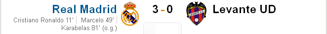 Kết thúc trận đấu, Real giành chiến thắng nhẹ nhàng 3-0, lấy lại ngôi vị số 1 từ tay Atletico Madrid.