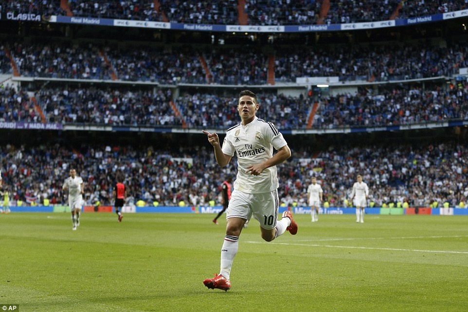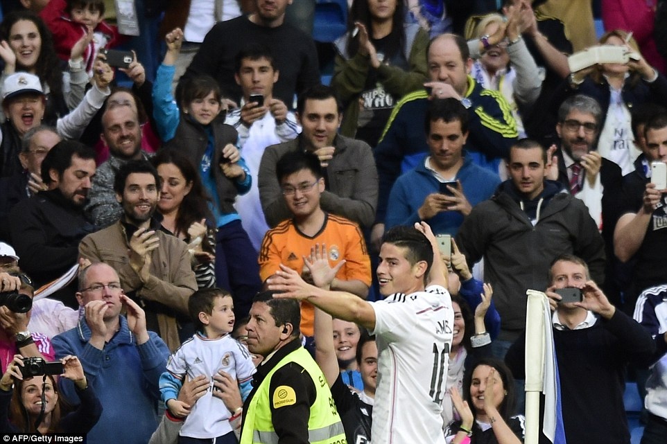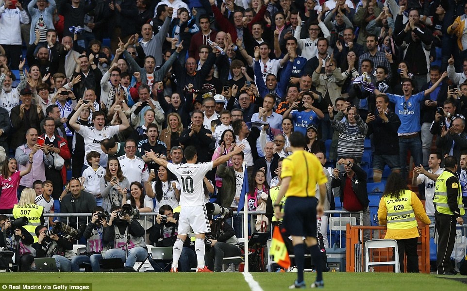 | Bàn thắng của tiền vệ người Colombia khiến CĐV Real trên sân Bernabeu rất phấn khích. |