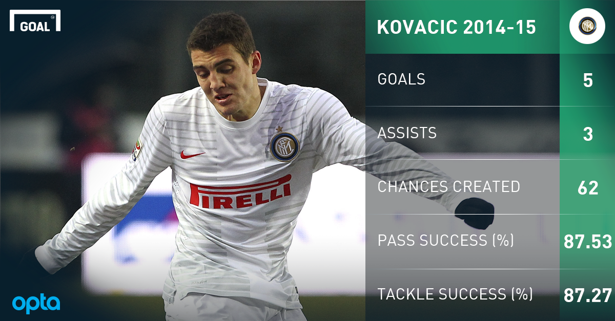 | Những con số ấn tượng về Kovacic tại Serie A mùa trước. Ảnh: Goal. |