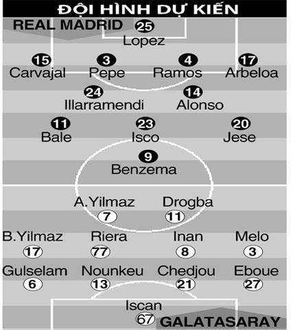 Real hiện đang bất bại ở Champions League với thành tích thắng 3, hòa 1. Đặc biệt, họ đã ghi tới 14 bàn thắng tính đến thời điểm này và đang là đội có hàng công mạnh nhất vòng bảng. Sẽ không quá bất ngờ nếu các chân sút của đội chủ nhà sẽ lại có một màn bắn phá tan nát khung thành của Galatasaray . Phải đặc biệt nhấn mạnh, đội bóng đến từ Thổ Nhĩ Kỳ đang chơi phòng ngự không tốt, khi để thủng lưới liên tiếp trong 10 trận gần đây.
