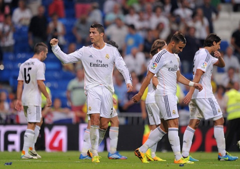 Real Madrid: Diego Lopez (25), Carvajal (15) - Ramos (4) - Pepe (3) - Arbeloa (17), Khedira (6) - Modric (19), Di Maria (22) - Isco (23) - Ronaldo (7), Benzema (9)