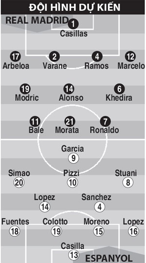 Trong suốt lịch sử tham dự La Liga, Espanyol chỉ thắng được Real Madrid vỏn vẹn 4 lần trên sân Bernabeu, lần gần nhất cách đây đã 18 năm (2-1 ngày 21/4/1996). Ngoài ra, Espanyol thậm chí còn hạ vũ khí ở La Liga trước cả Real Madrid. Sau khi thắng Malaga 2-1 ở vòng 30 để đạt cột mốc trụ hạng theo lý thuyết 40 điểm, đội quân của HLV Javier Aguirre đã trải qua 7 trận liên tiếp bất thắng (hòa 2, thua 5).Dù sao, sẽ “đẹp mặt” hơn cho Real nếu họ kết thúc mùa giải ở La Liga một cách trọn vẹn, bằng chiến thắng trong trận cuối mùa này ở “thánh địa” Bernabeu, trước khi bay sang Lisbon phân định phải trái với đối thủ cùng thành phố Atletico. Nhưng hãy nhớ rằng mục tiêu quan trọng nhất của Real là giữ quân cho trận chung kết Champions League mà họ đã chờ đợi suốt 12 năm qua…