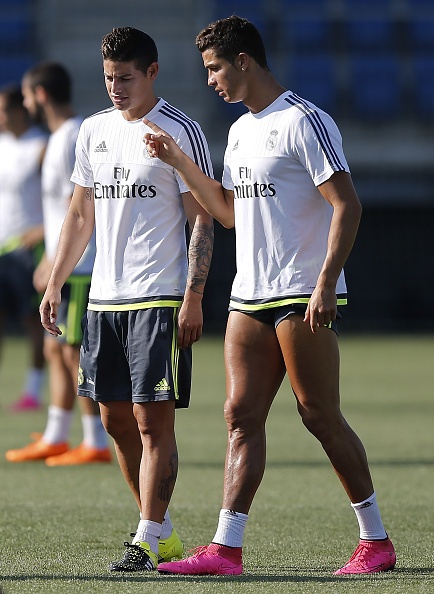 | Cristiano Ronaldo và James Rodriguez tỏ ra khá thân thiết ở Real. Hai cầu thủ này cùng có chung người đại diện là siêu cò Jorge Mendes. |