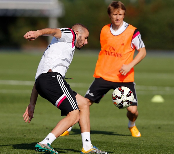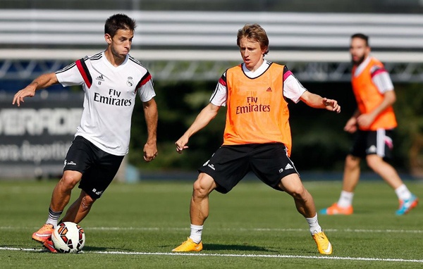 | Tiền vệ Luka Modric (phải) tích cực tập luyện với mục tiêu ghi điểm với HLV Ancelotti nhằm chiếm vị trí ra sân thường xuyên trong đội hình Real mùa này. |