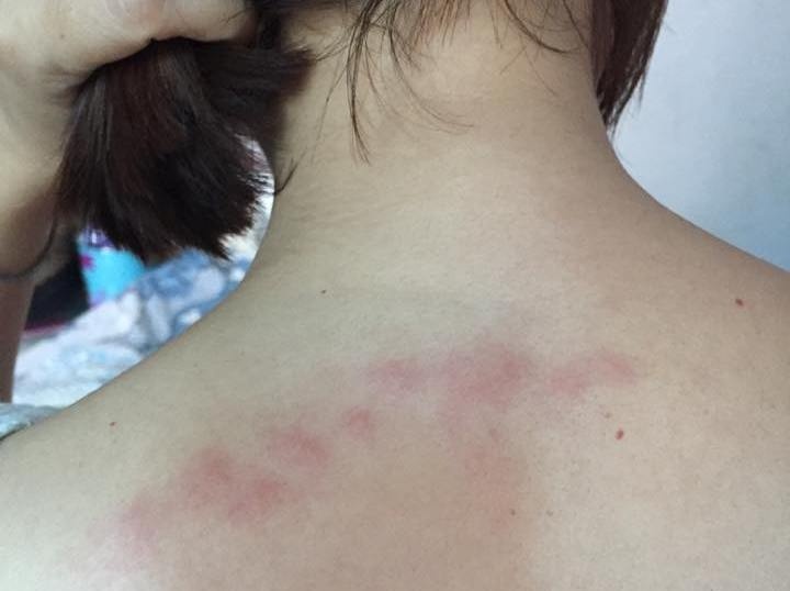 Lúc đó người mẹ tưởng là kiến cắn, nhưng khi tìm thì không thấy gì nên không để ý nữa. Hôm 6/8, trong lúc gia đình đang ngủ thì chị bị côn trùng cắn hơn chục vết nên thức dậy mở đèn kiểm tra.