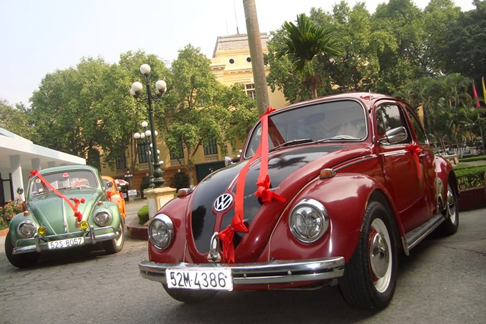 | Xe "Con bọ" cổ khá lạ mắt giữa rừng xế hiện đại. Một chiếc xe này có giá thuê 1,5 - 2 triệu đồng cho 3 tiếng chụp hình. |