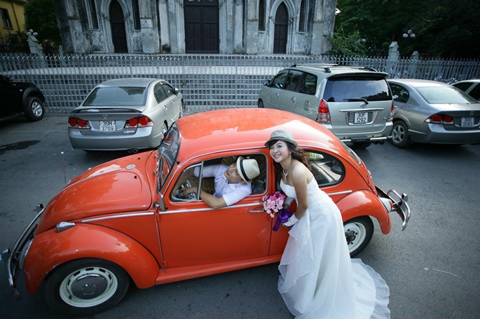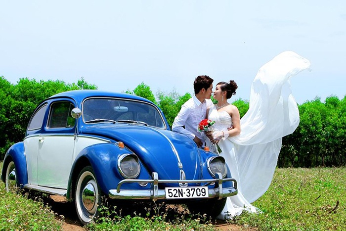 | Hiện khá nhiều bạn trẻ sẵn sàng bỏ thêm một khoản không nhỏ để thuê xe cổ chụp ảnh cưới. |