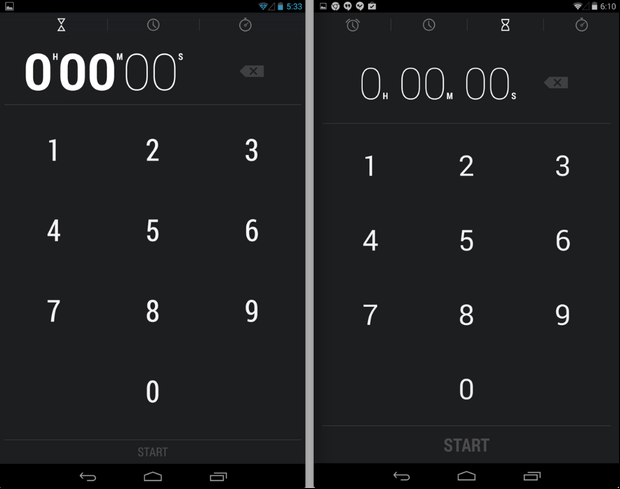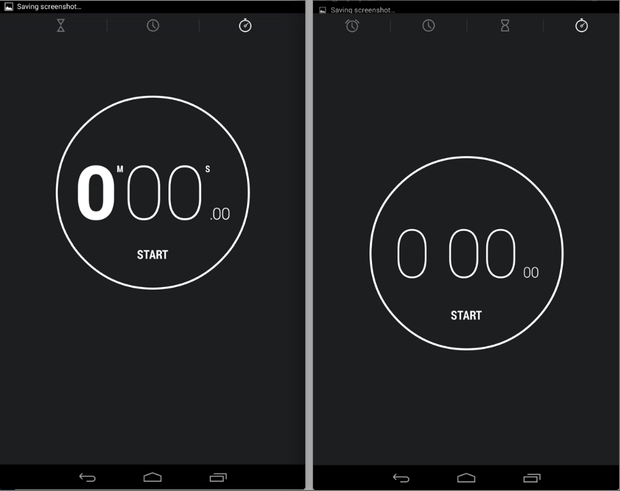 | Font số và cụm đồng hồ của ứng dụng bấm giờ trên Android 4.4 |