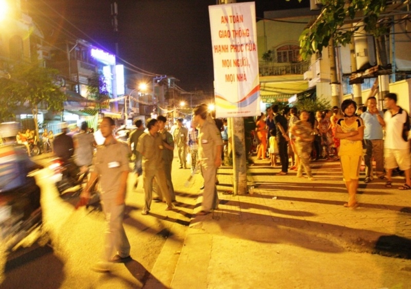 | Lực lượng chức năng địa phương phải làm việc cực lực ổn định trật tự trên đường Hưng Phú. |