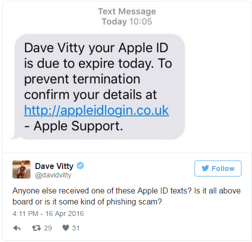 Mặc dù Apple chưa đưa ra bình luận gì, trang thông tin hỗ trợ chính thức của họ xác nhận đây không phải phương pháp liên hệ người dùng thường gặp của Apple.