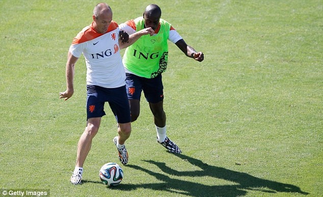 Chiều qua (8/6), đội tuyển Hà Lan có buổi tập nhẹ tại Rio để chuẩn bị cho VCK World Cup 2014. Tuy nhiên, giữa Arjen Robben và Bruno Martins Indi luôn có những pha tranh chấp quyết liệt trên mức cần thiết.