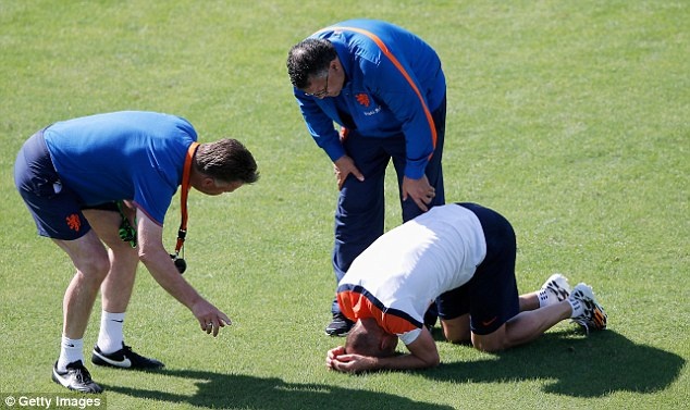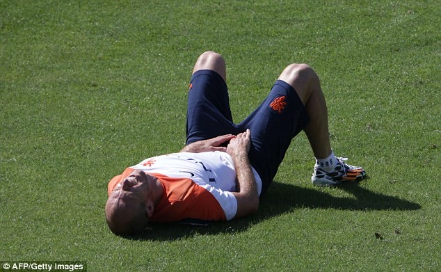 Chỉ tới khi nhân viên y tế vào kiểm tra vết đau, Robben mới chịu đứng dậy.