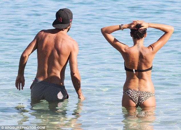 | Pires và bà xã không ngần ngại thể hiện tình yêu ngọt ngào bằng những màn khóa môi cháy bỏng trên biển. |