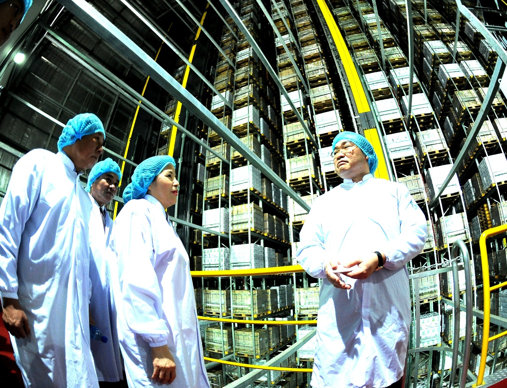 | Phó thủ tướng Hoàng Trung Hải đánh giá cao việc Vinamilk đầu tư kho thông minh đầu tiên của ngành sữa Việt Nam và thế giới hết sức hiện đại. (Ảnh: Nguyễn Á) |