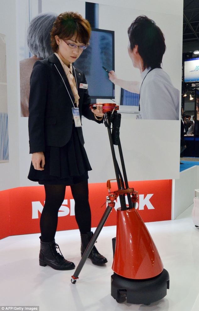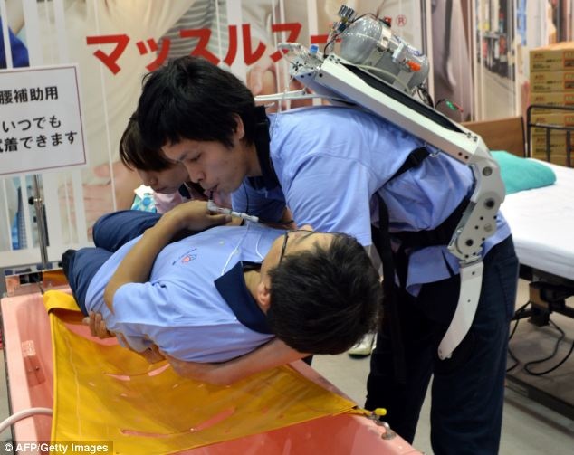 | Muscle Suit là tên một thiết bị có khả năng hỗ trợ nhân viên y tế nâng người bệnh. Nó là một trong những thiết bị mà người ta trưng bày trong Triển lãm Robot tại thành phố Tokyo, Nhật Bản vào ngày 7/11. Ảnh: Getty Image. |