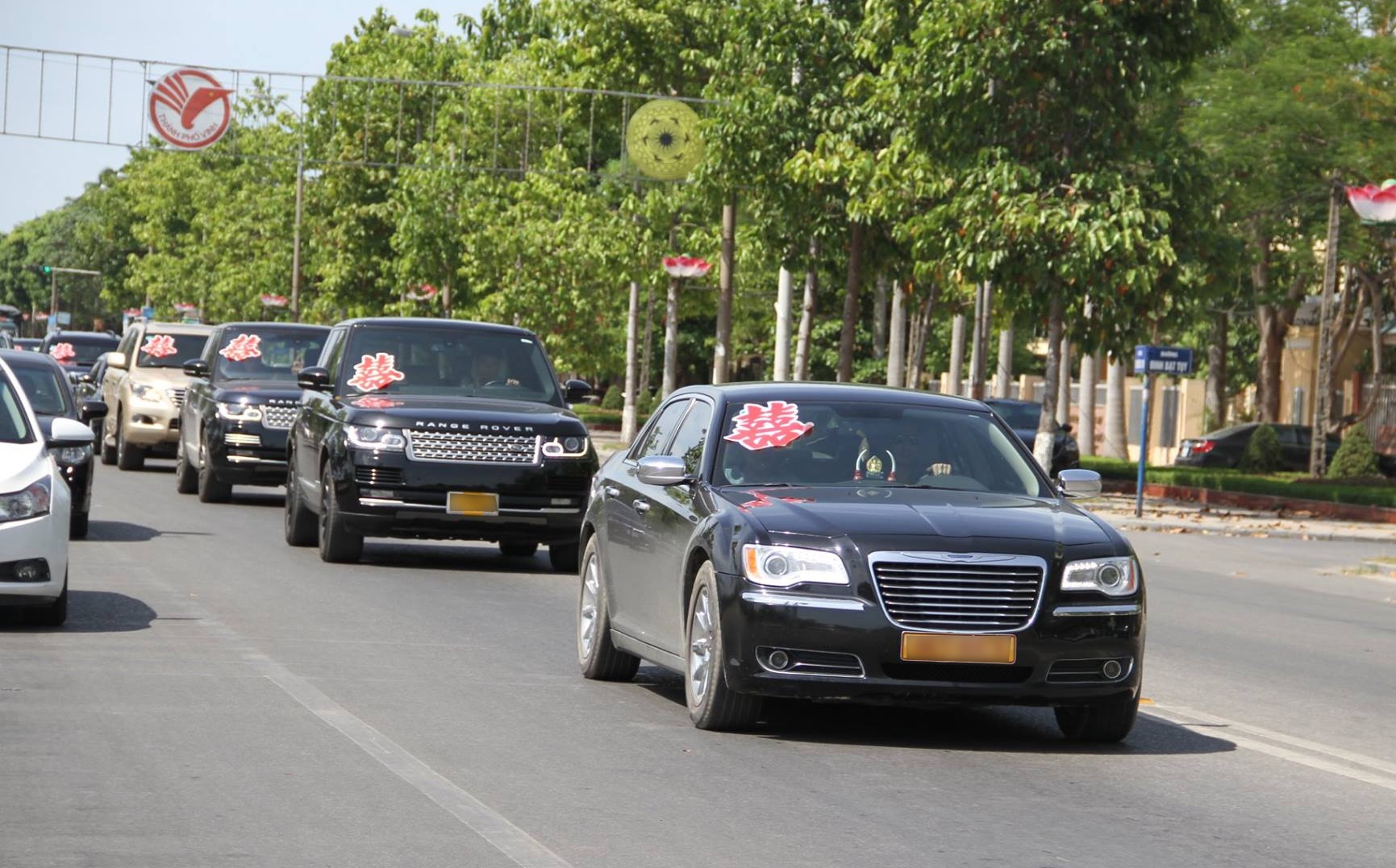 | Chiều 2/6, một đám cưới thu hút sự chú ý lớn của người dân Nghệ An với sự góp mặt của loạt xe sang và môtô phân khối lớn trong đoàn xe rước dâu. Nổi bật nhất là 3 chiếc siêu sang Rolls-Royce, trong đó mẫu xe mui trần Rolls-Royce Phantom Drophead Coupe làm xe hoa. |