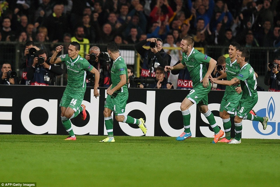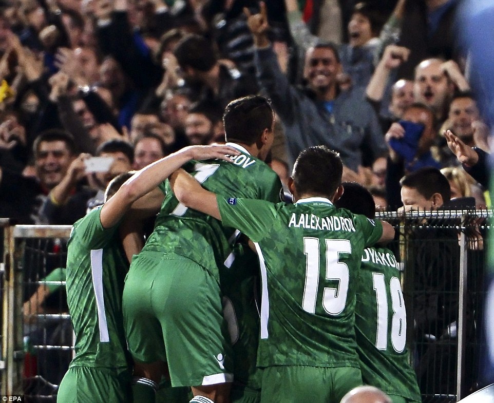 | Các cầu thủ Ludogorets vỡ òa khi xuyên thủng mành lưới nhà ĐKVĐ Champions League. |