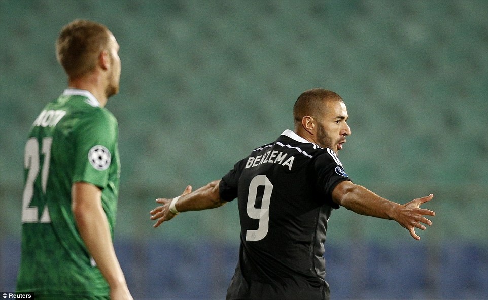 | Phút 77, Benzema khai hỏa chỉ 10 phút sau khi được tung vào sân thay cho Chicharito. |