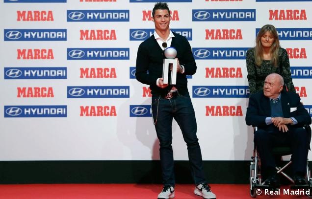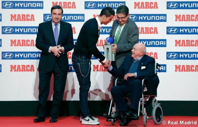 | Chiều qua, ngôi sao người Bồ Đào Nha Cristiano Ronaldo bảnh bao tới dự lễ trao giải Alfredo di Stéfano do tạp chí Marca tổ chức. Đây là giải thưởng được tổ chức thường niên từ năm 2008 nhằm tôn vinh các cầu thủ thi đấu tại La Liga. Kết quả giải thưởng dựa vào sự bầu chọn của ban giám khảo và độc giả tạp chí Marca. |