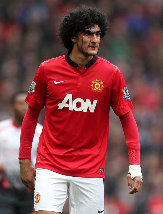 | Trong trận đại chiến giữa M.U và Liverpool, tiền vệ Fellaini của Quỷ đỏ Manchester bị chảy máu sau khi va chạm với thủ quân Gerrard bên phía đối phương. |