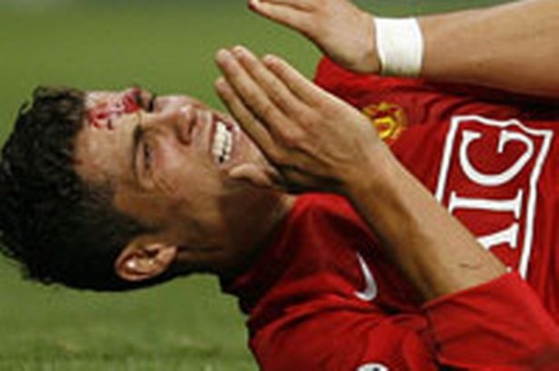 | Khi còn thi đấu cho M.U, Cristiano Ronaldo dính chấn thương ở mắt trong trận đụng độ AS Roma diễn ra vào tháng 10/2007. |